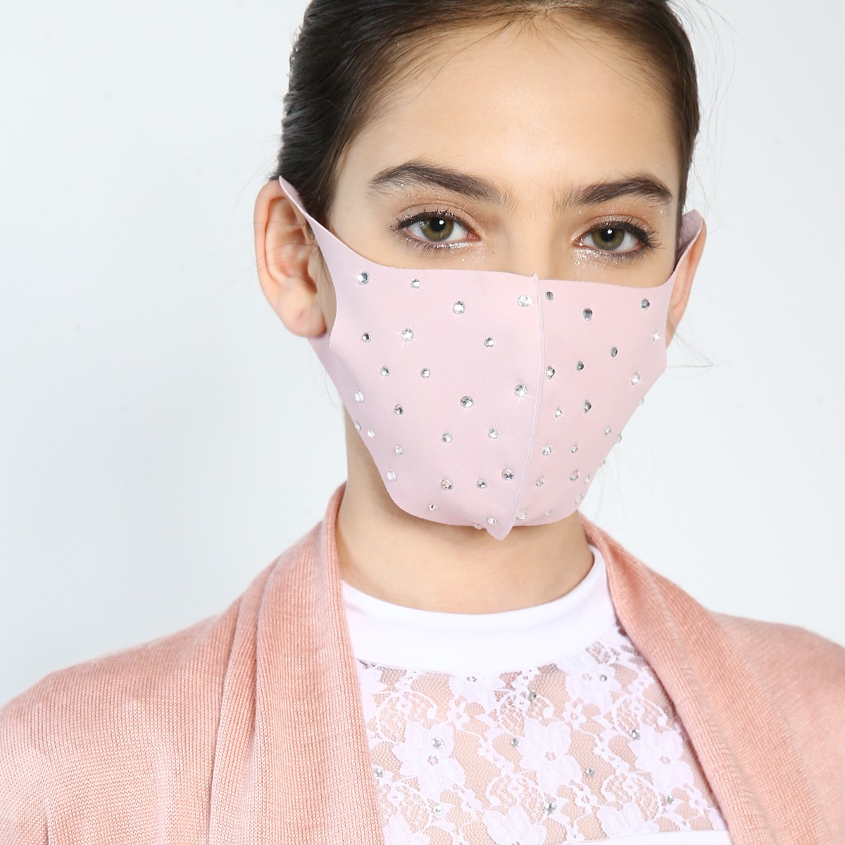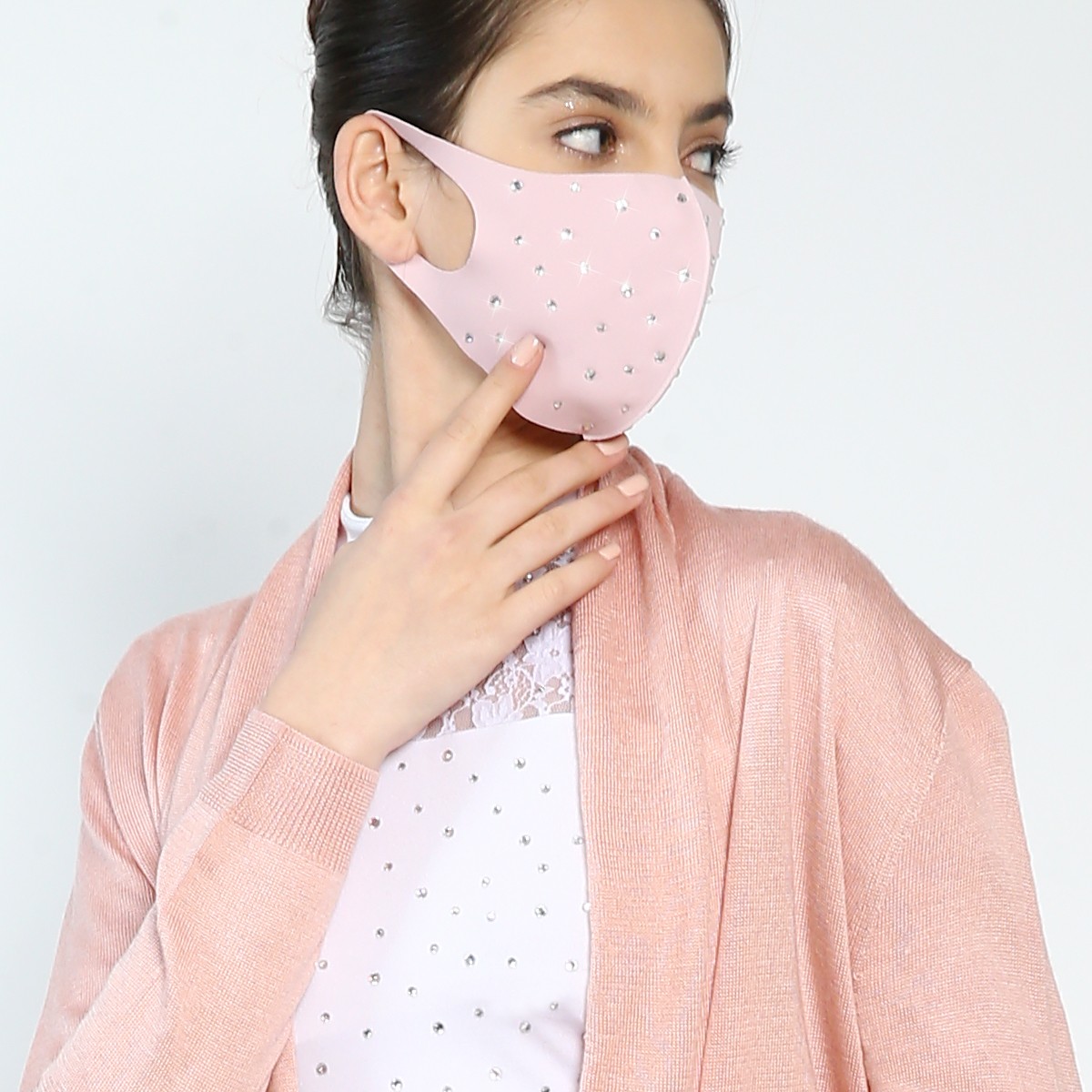 Sparkling crystals embellish this stretchable cloth face mask. Keep your face warm in a fashionable manner. Freesize.