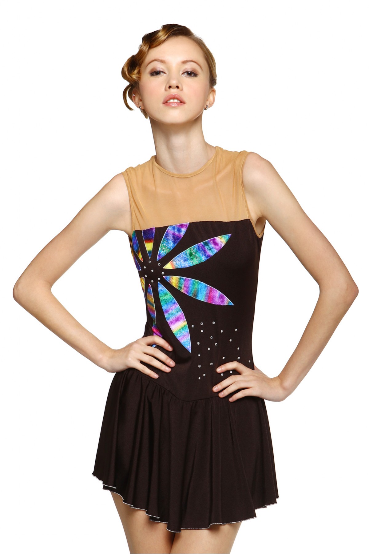 在人群中脱颖而出的溜冰裙饰以大胆的多色花型设计在的面料。散水钻炫并提请注意的惊艳作品。银边装饰眩光短裙。